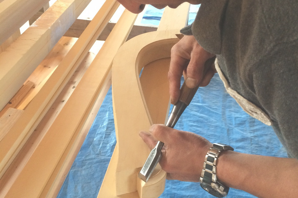 もちろん美しい軒反りを出すためには全体のバランスやその立地、人々の目線なども考慮しますが伝統工法を支える確かな技術と宮大工としての覚悟が必要です。