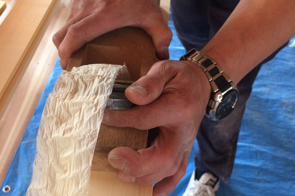 小林社寺さんと仕事をさせていただくときは、小林さんの加工場でこちらの意図を伝えながら一緒に微修正を重ねます。これにはあうんの呼吸が必要とされます。偉そうに言う気はありませんが私の場合でも、これを一緒にできる職人は限られます。
